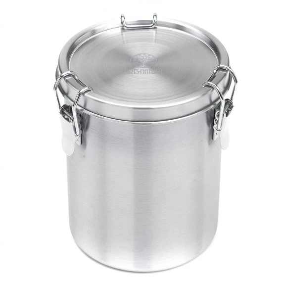 Diese Edelstahl-Vorratsdose mit Bügelverschluss ist perfekt für die Lagerung von Lebensmitteln wie Kaffee, Zucker und Reis geeignet. Sie lässt sich platzsparend im Camper oder in der heimischen Küche verstauen. Die Frischhaltedose gibt keinen Eigengeschmack an die Lebensmittel ab, ist geruchsneutral und ohne bedenkliche Stoffe wie BPA und Weichmacher gefertigt. Der Aufbewahrungsbehälter lässt sich leicht per Hand oder in der Spülmaschine reinigen.