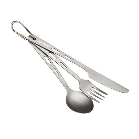 ARTS-Nature Titanium Besteck Messer + Gabel + Löffel Campingbesteck Set 3-teilig