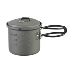 Mit dem 1000 ml Trockenbrennstoffkochset aus extrem leichtem, hartanodisiertem Aluminium macht Reisen Spaß, denn es beschwert das Gepäck mit einem Gewicht von nur etwa 314 g kaum. Anfeuern lässt sich das Kochset mit zwei 14 g oder einer 27 g Esbit Trockenbrennstoff-Tabletten. Der Deckel kann während des Kochens praktisch am Rand des Topfes aufgehängt werden. Der Stand lässt sich im Inneren des Topfes für den Transport verstauen, sodass das Kochset ein besonders kleines Packmaß hat.