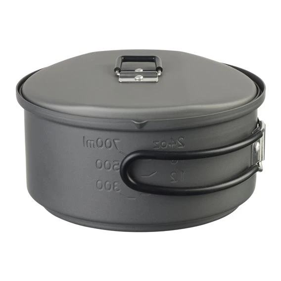 - Topf und Stand aus extrem leichtem, hartanodisiertem Aluminium (ca. 314 g)
