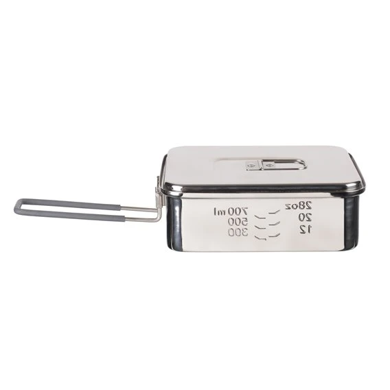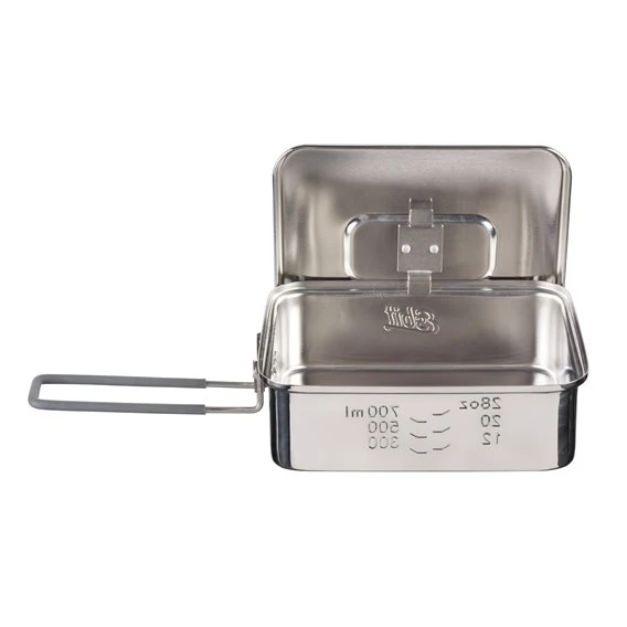 Ob beim Camping, der Wanderung oder beim Ausflug zum See – an der frischen Luft kann der Appetit schonmal größer werden. Da kommt dieser Topf aus hochwertigem Edelstahl oder hartanodisiertem Aluminium gerade recht. Denn er fasst bis zu 1200 ml und zeigt das Volumen in oz und ml an. Sein handlicher Griff aus Edelstahl, lässt sich praktisch hochklappen. Das spart Platz im Rucksack und schenkt gleichzeitig Sicherheit und Komfort beim Kochen. Der Deckel kann zudem direkt am Topfrand aufgehängt werden, wenn dieser in Benutzung ist. Zum Lieferumfang gehört ein praktischer Netzbeutel für den Transport.