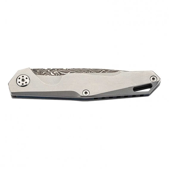 Dieses schlanke Slip Joint Taschenmesser aus dem Hause Herbertz ist der ideale Alltagsbegleiter. Die schön gezeichnete, 67-lagige Damastklinge verfügt über eine Kernlage aus AISI 440C Stahl und wird von einer kräftigen, blau anodisierten Rückenfeder in Position gehalten. Als Griffmaterial kommen CNC gefertigte Heftschalen aus mattiertem Edelstahl zum Einsatz. Eine Fangriemenöse sowie eine attraktive Geschenkbox runden die Ausstattung ab.