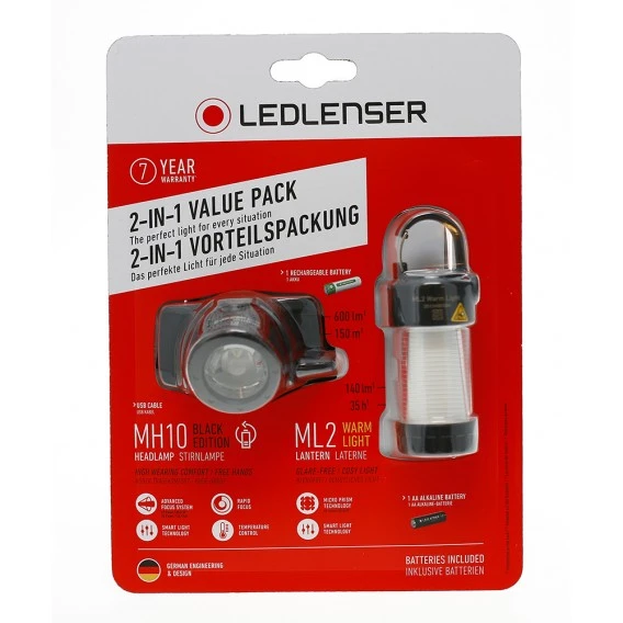 Ledlenser Stirnlampe MH10 mit ML2 Warm Light Laterne Vorteils Set