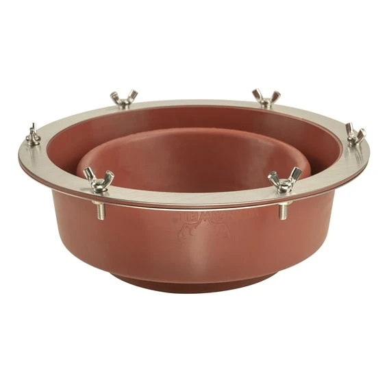 - Mit Edelstahlring und sechs Flügelmuttern halten das Flashing-Kit an Ort und Stelle