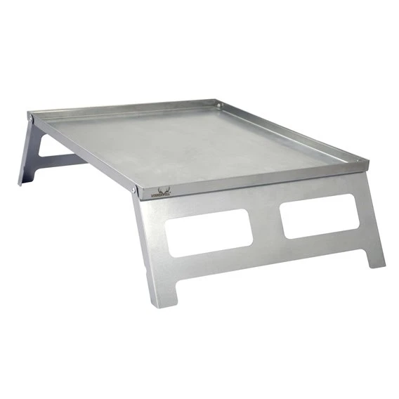 Der Zubehörtisch hat die perfekte Größe für die flache Feuerstelle von Winnerwell in Größe L. Er hebt die Feuerstelle vom Boden ab und hilft, Asche oder Glut, die aus der Feuerstelle entweichen kann, aufzufangen. Dieser Tisch ist aus langlebigem AISI304-Edelstahl gefertigt, lässt sich für eine kompakte Lagerung flach zusammenklappen und kann auch als Campingtisch genutzt werden.